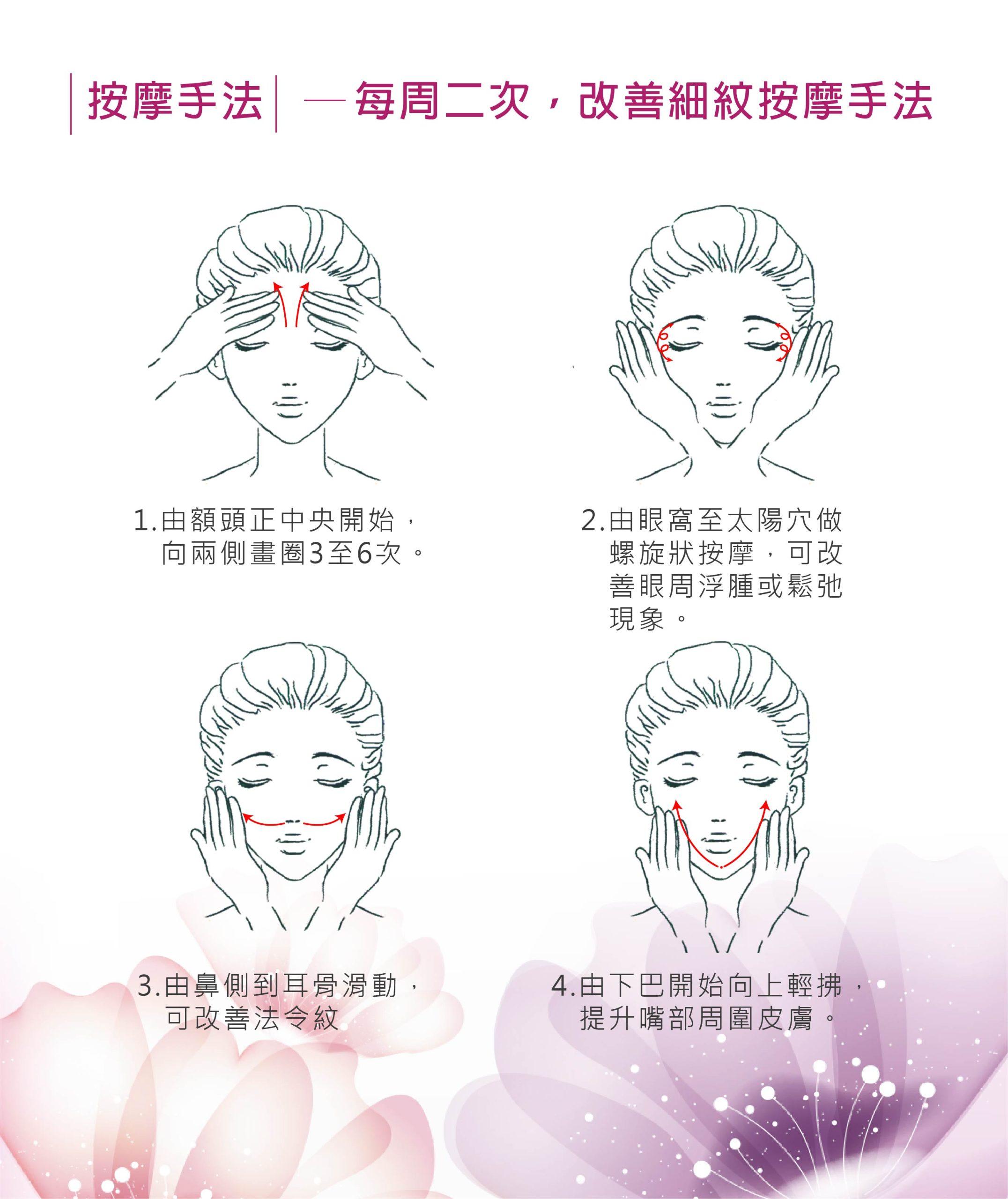 於清潔、化妝水後,取適量「逆轉肌齡再生晶萃(蠶絲油&玫瑰果油)」塗抹於肌膚,按摩直至完全吸收。