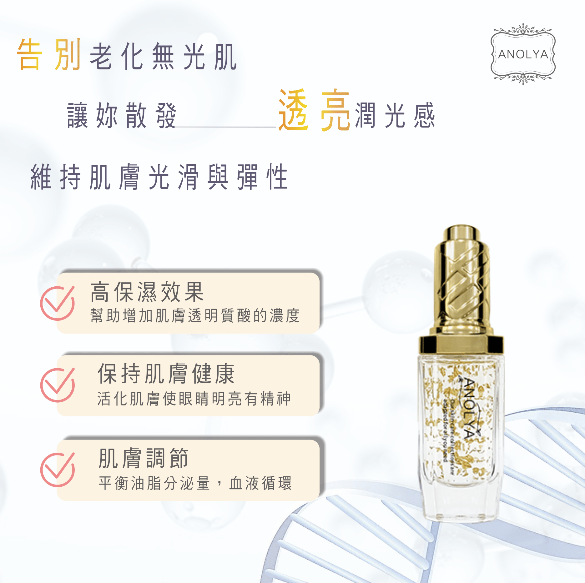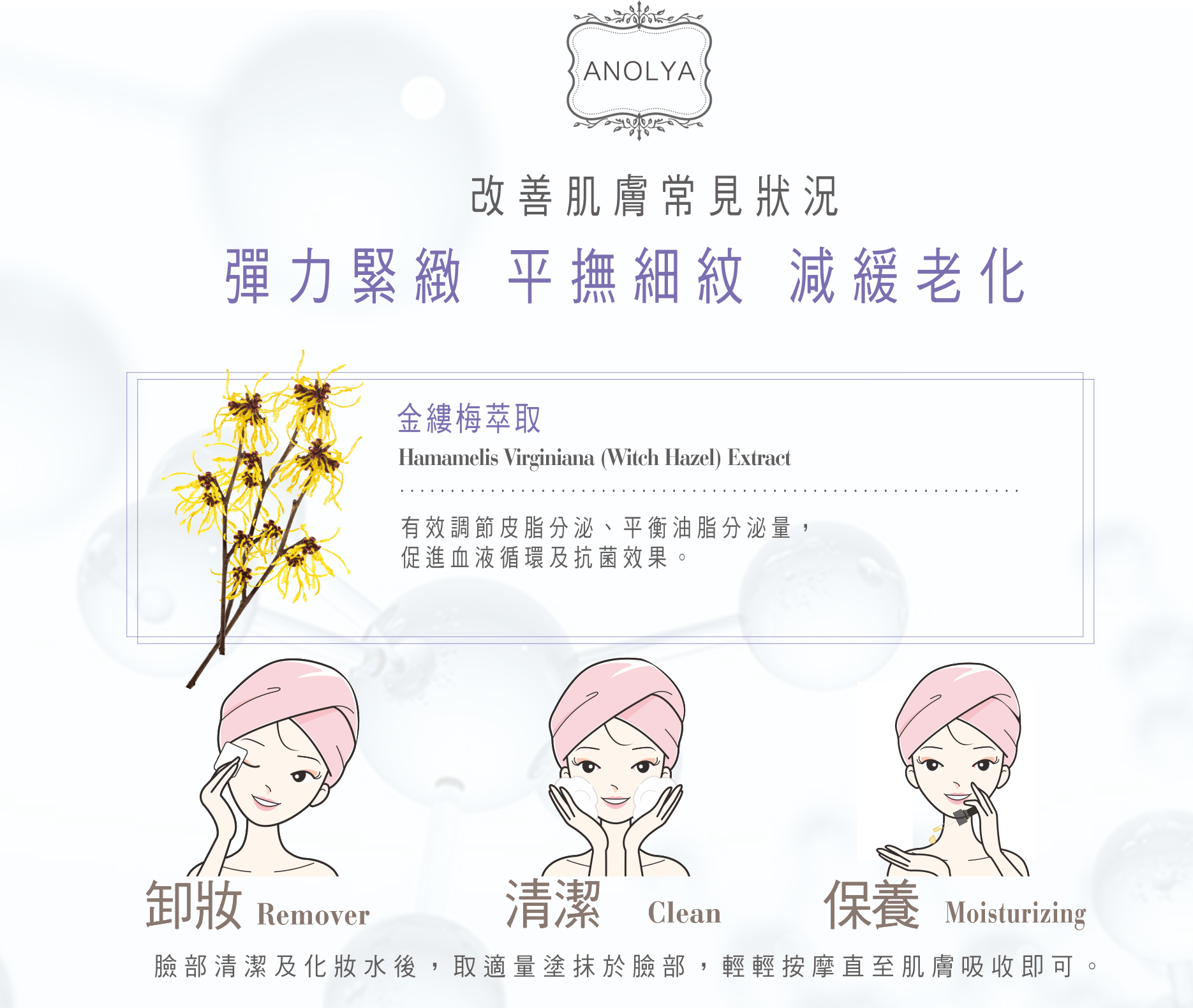 能撫平細紋,維持肌膚彈性與光澤,使之健康亮麗更顯青春。