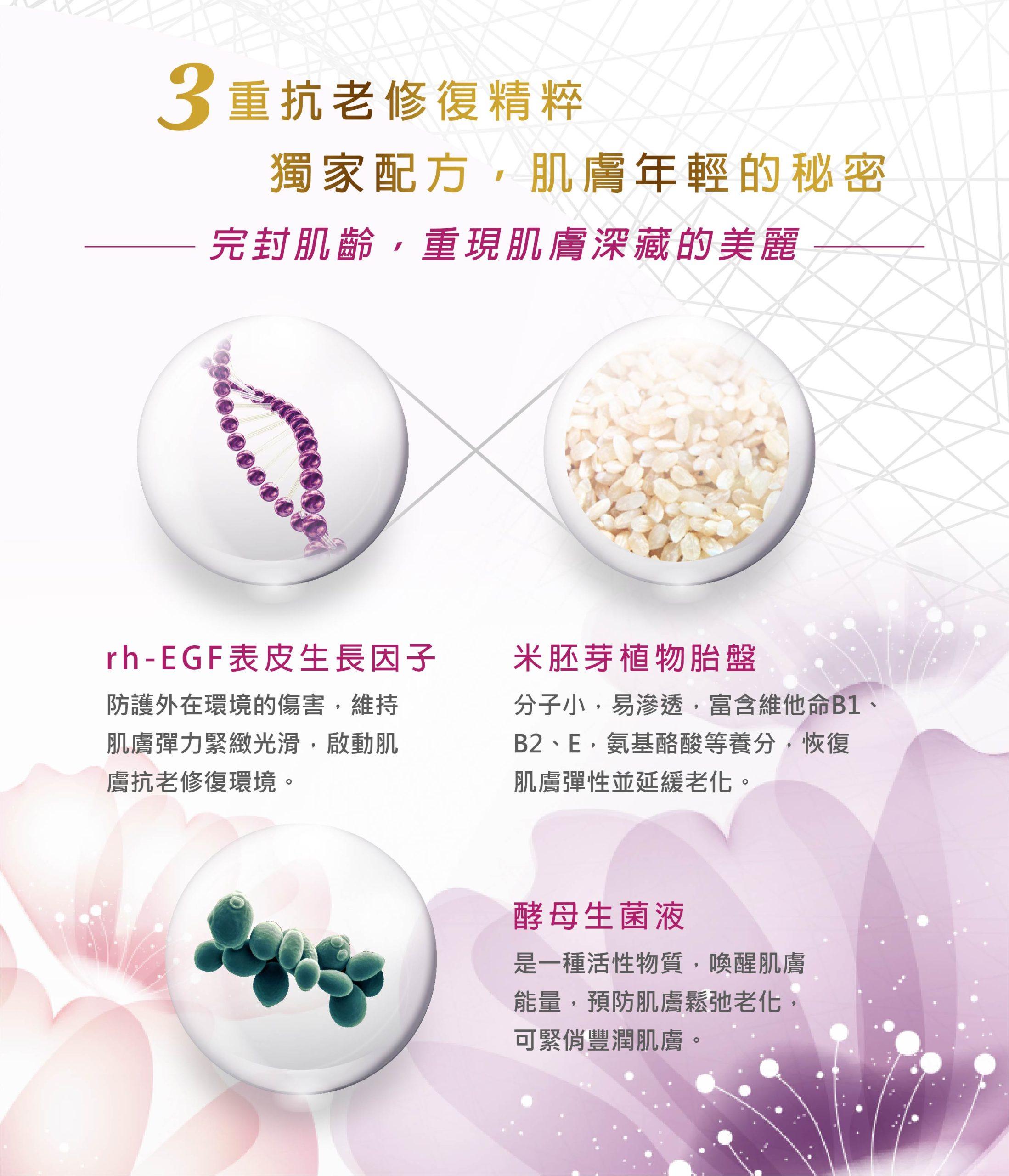 維持明亮肌膚,強健肌膚彈力網絡,淡化皺紋深度,使肌膚由內而外恢復光澤亮麗。