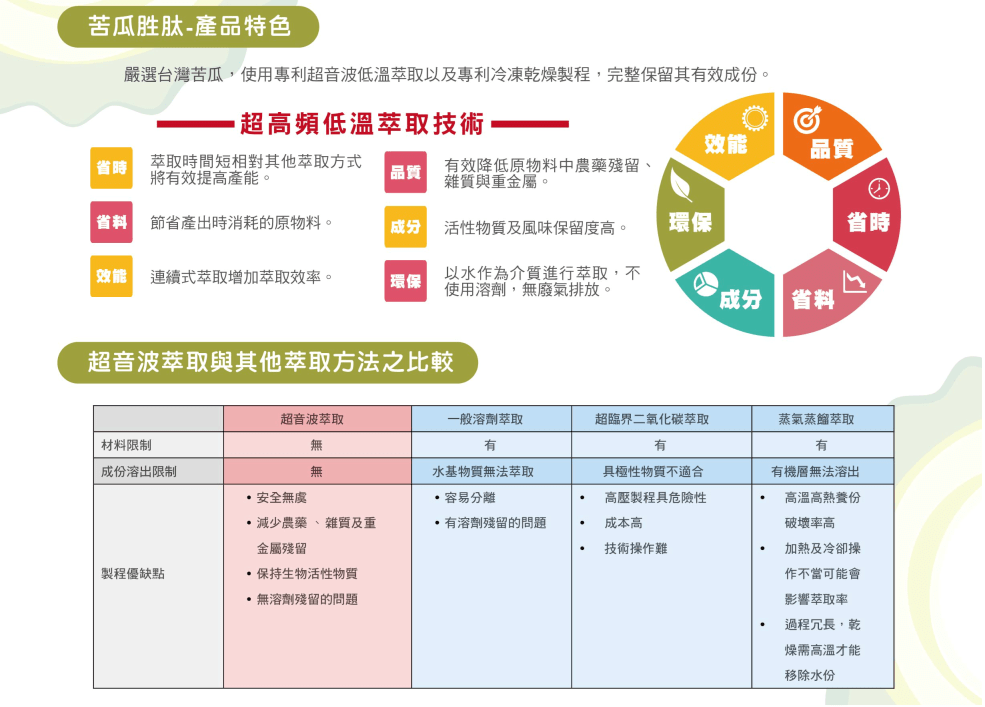 內 容 物:專利苦瓜胜肽粉(苦瓜胜肽、麥芽糊精))、肉桂萃取物(肉桂萃取物、糊精)、武靴葉萃取物、桑葉萃取物、鳳梨萃取物(鳳梨萃取物、麥芽糊精)、甘胺酸鋅、海蘊萃取粉(含褐藻醣膠)、吡啶甲酸鉻。