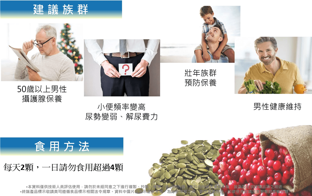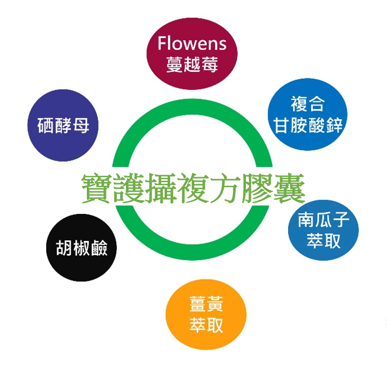 內 容 物:蔓越莓濃縮粉、微結晶狀α-纖維素、南瓜子萃取粉(南瓜子萃取粉、麥芽糊精)、複合甘胺酸鋅(甘胺酸鋅、胺基乙酸、檸檬酸、二氧化矽)、薑黃萃取粉、硒酵母、黑胡椒萃取胡椒鹼、磷酸鈣