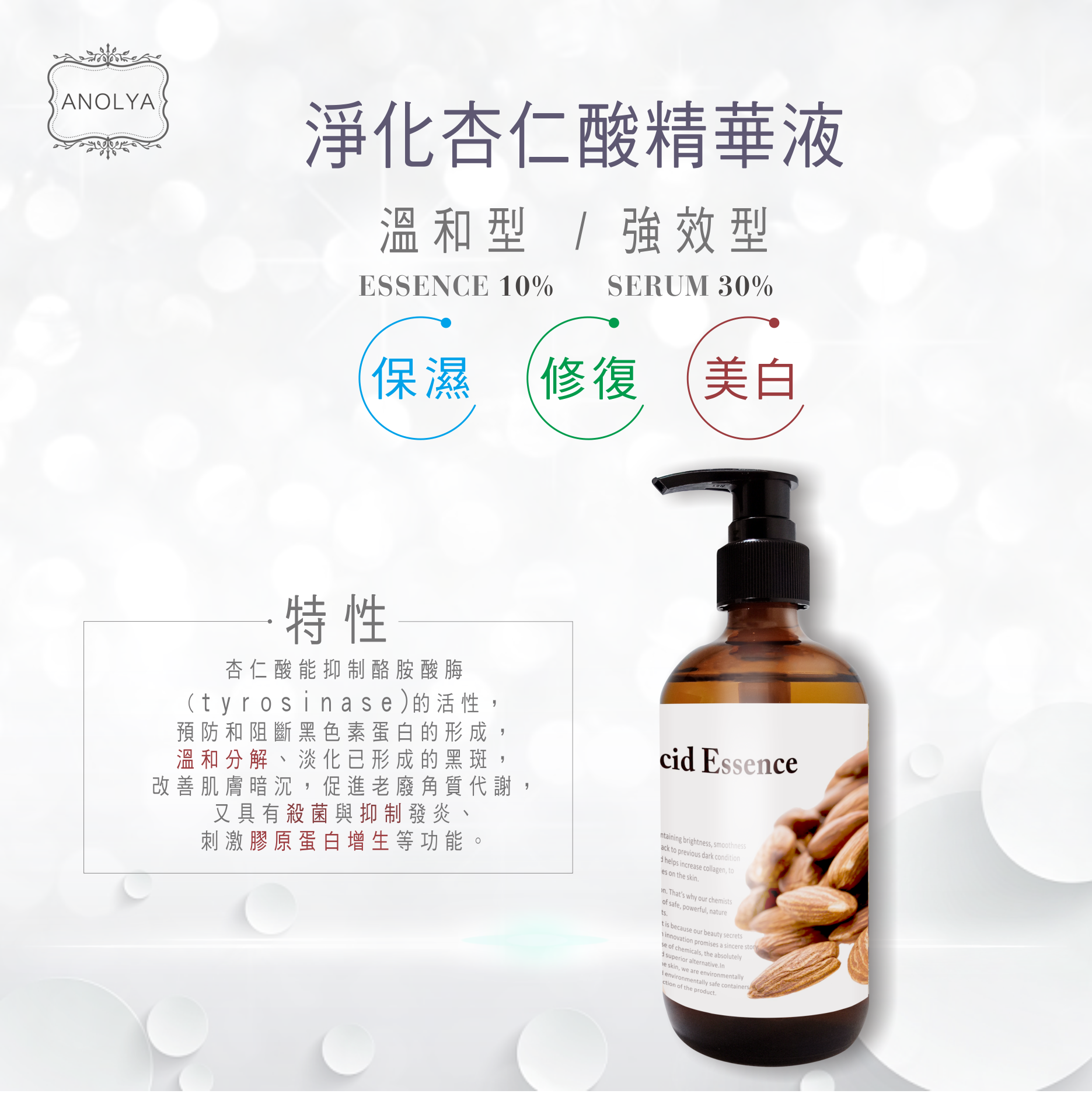 採用高純度杏仁酸急救保養