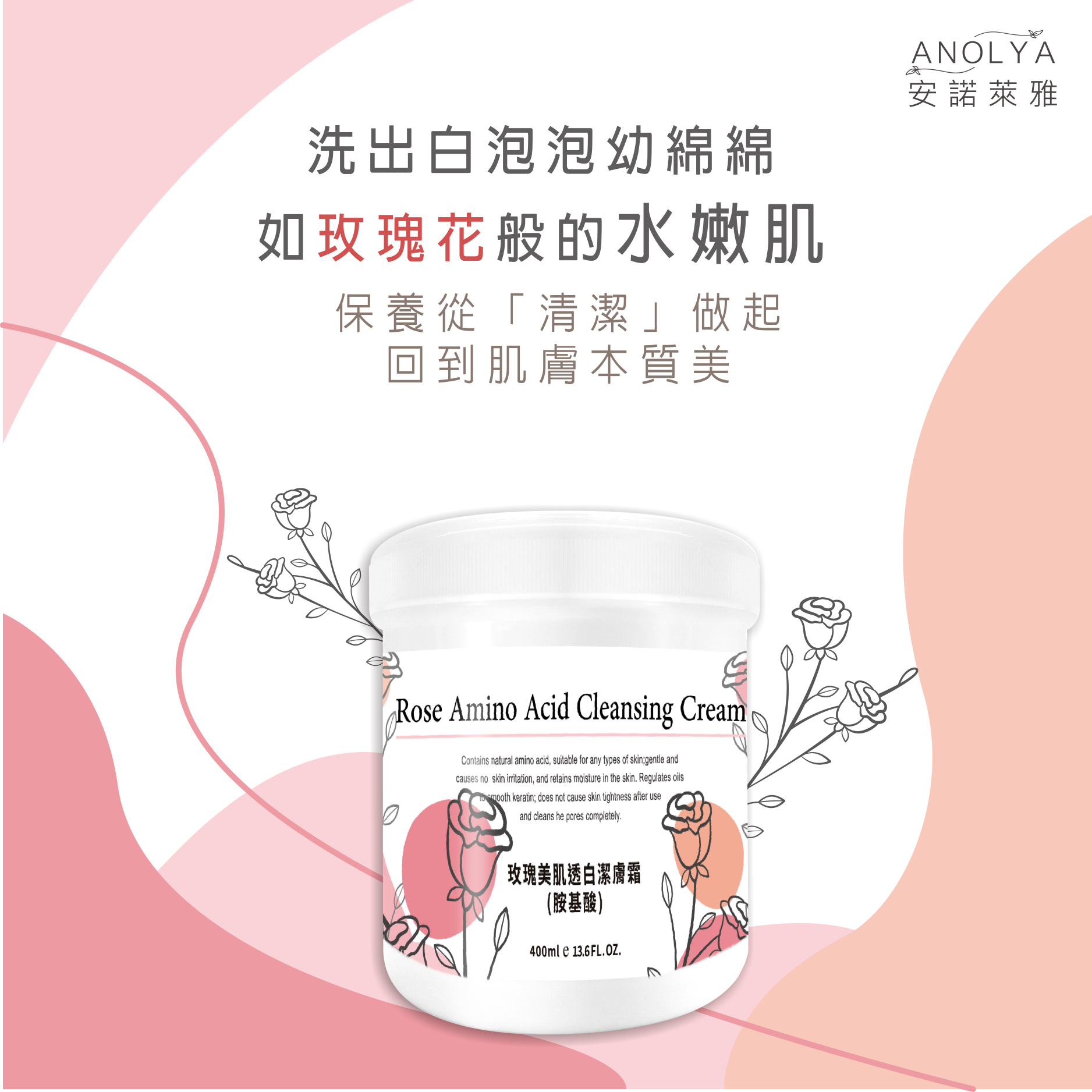 玫瑰美肌透白潔膚霜(胺基酸)400ml