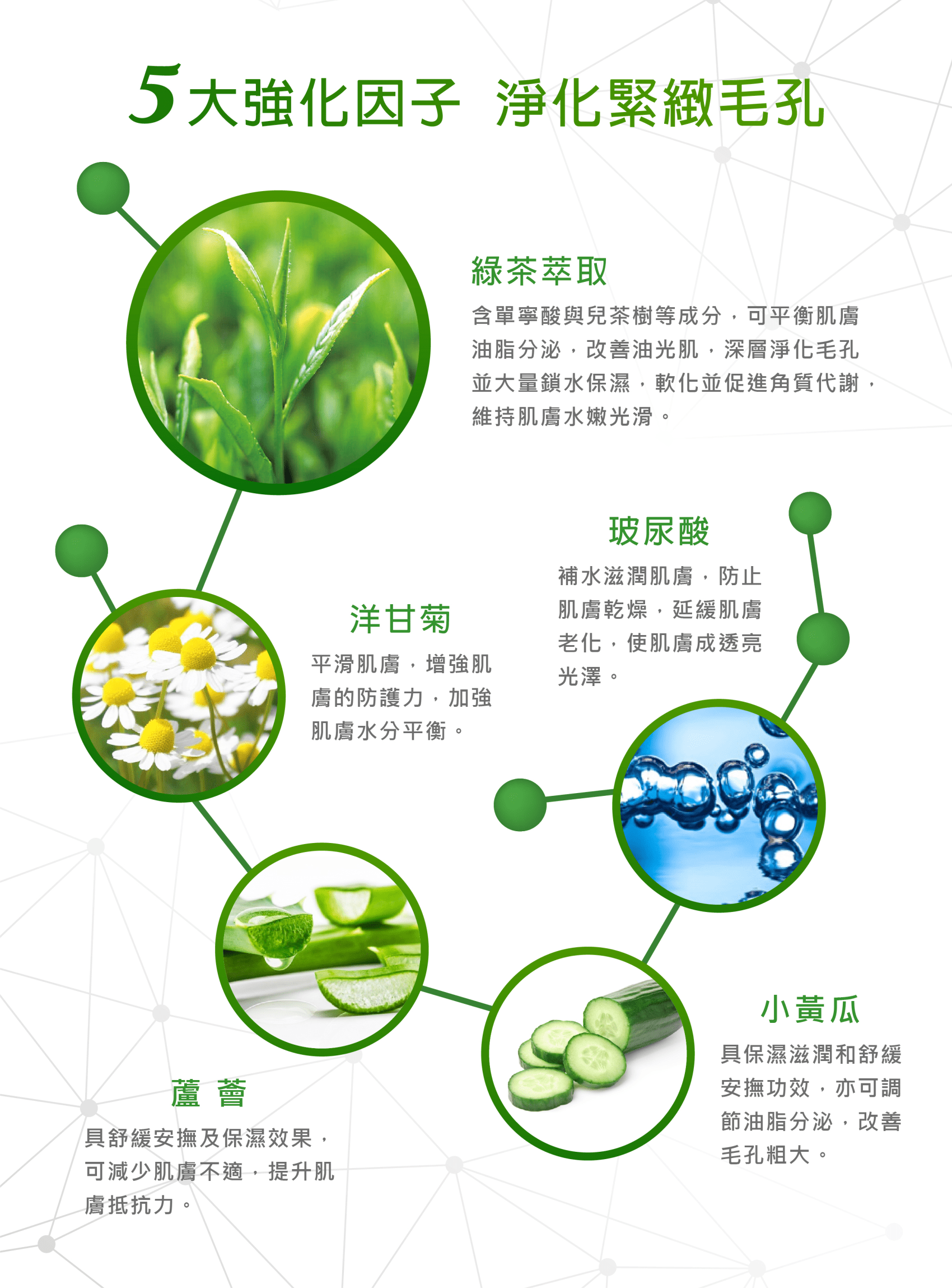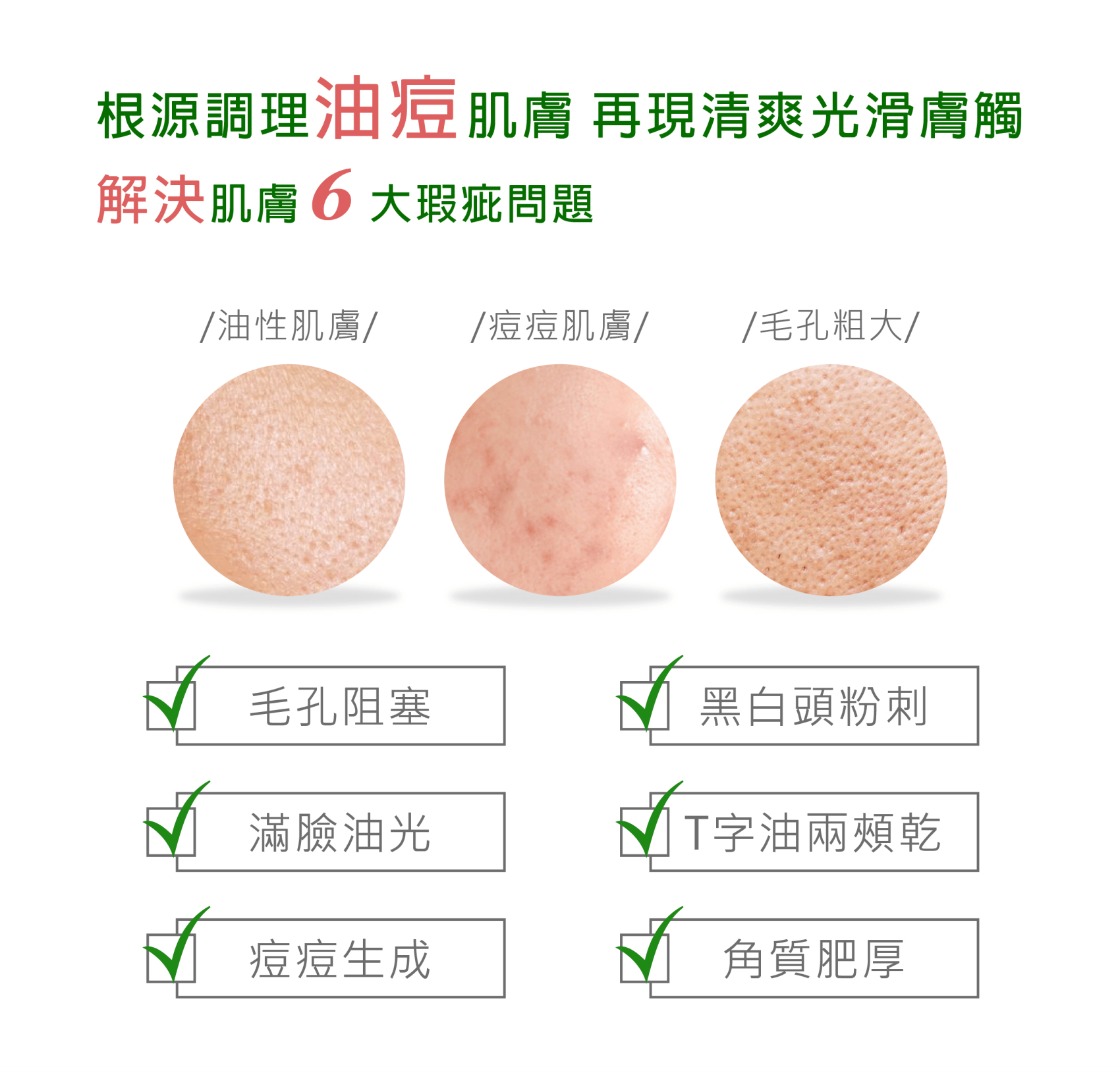 全面改善肌膚出油狀況,進而提升肌膚潔淨明亮度。