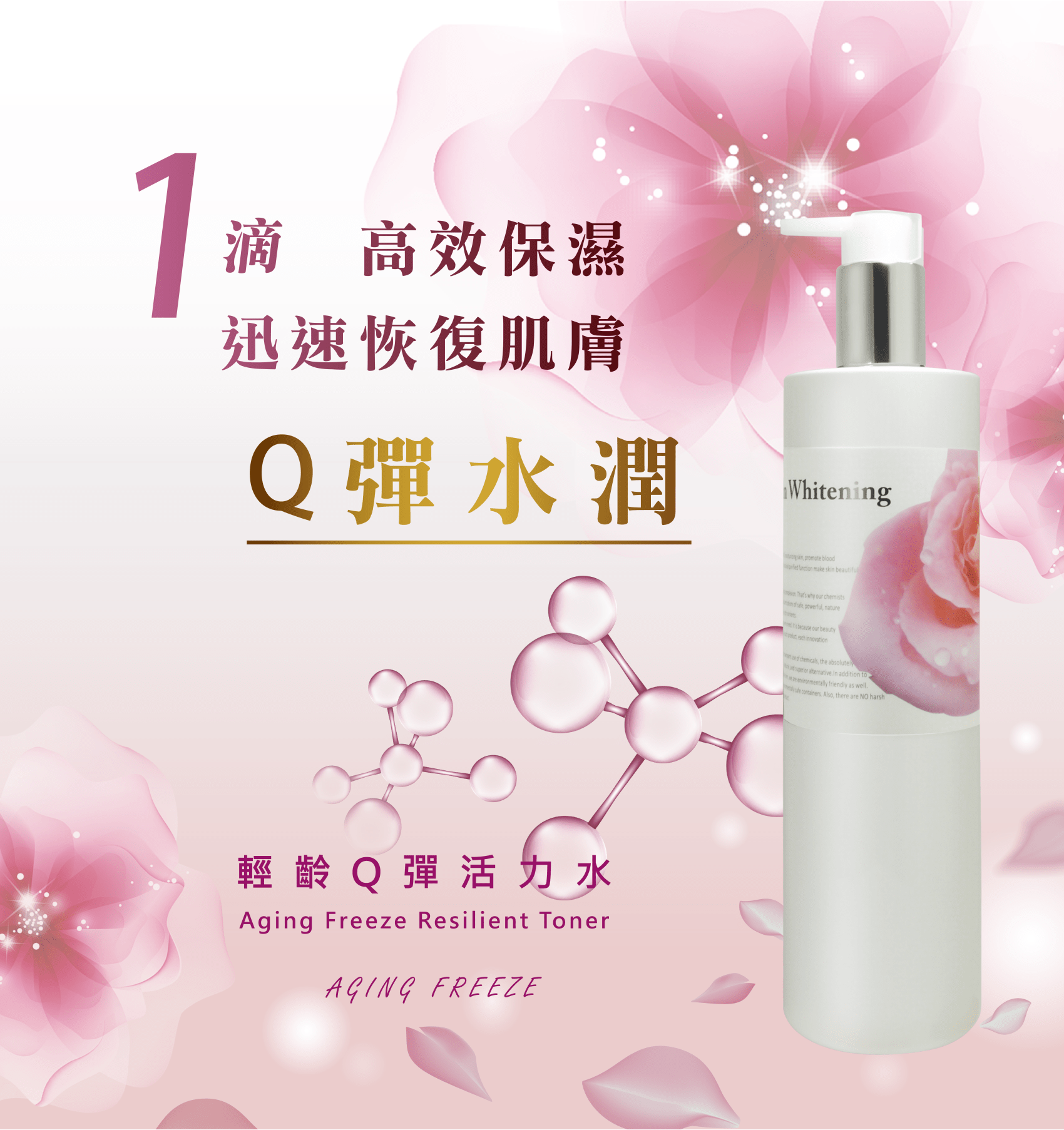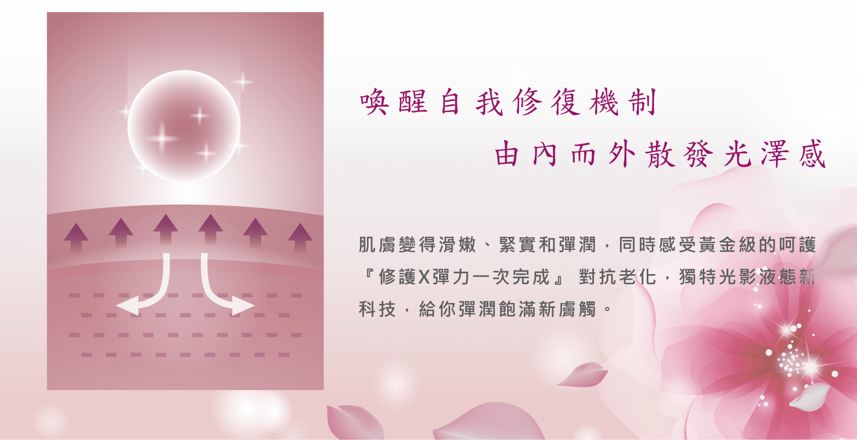 針對輕熟齡女性設計,抵抗肌膚初老現象。 提升了Q彈水的吸收,全面帶動起肌膚彈潤與氣色效果, 撫平肌膚出現的微小細紋,循環紅潤美肌。