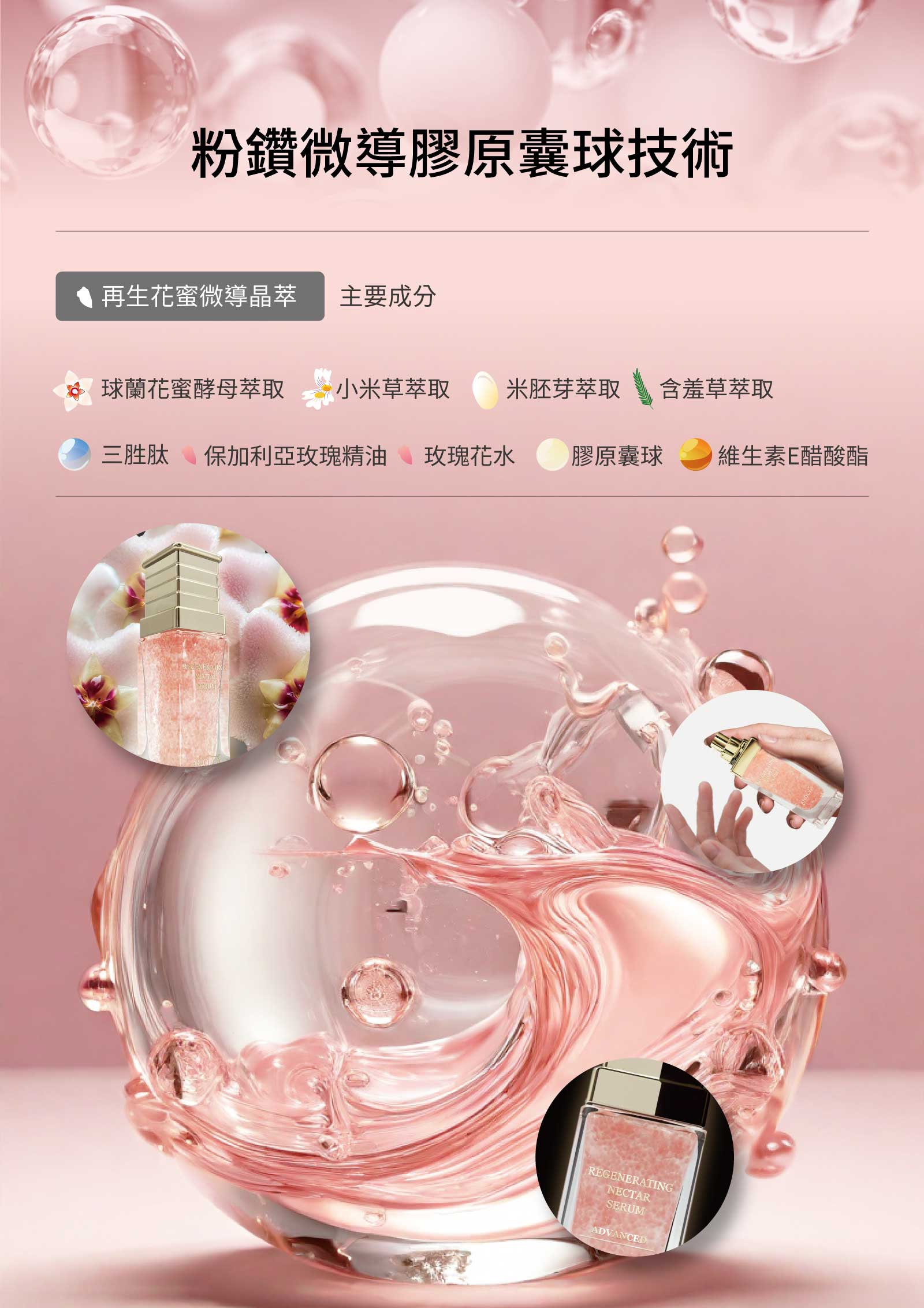 搭配豐沛滋潤力和精華高效的滲透力, 將營養注入肌底,逆轉歲月, 使肌膚更澎潤、更平滑,重拾肌膚年輕光彩。
