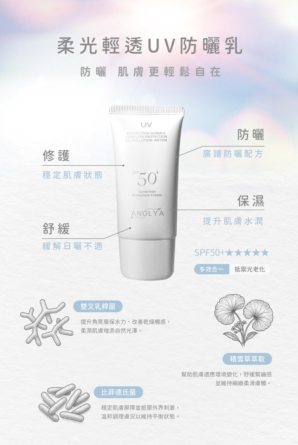 SPF50+★★★★★ 高效防護.全日守護! 結合防曬 × 保濕 × 修護 × 舒緩一瓶搞定 給肌膚全天候的穩定防護力