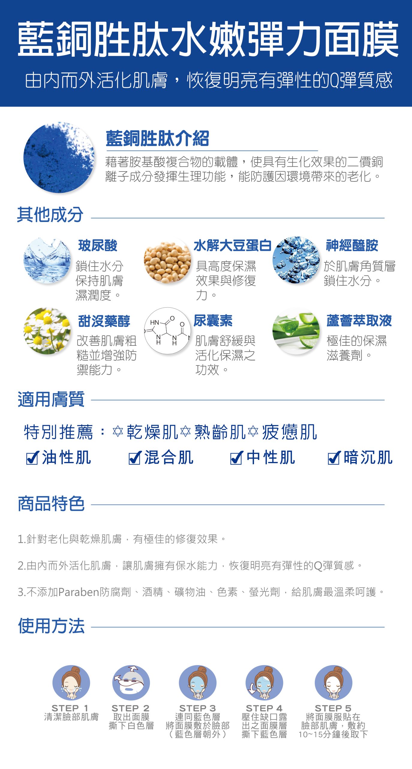 藍銅胜肽水嫩彈力面膜(一片 30ml)