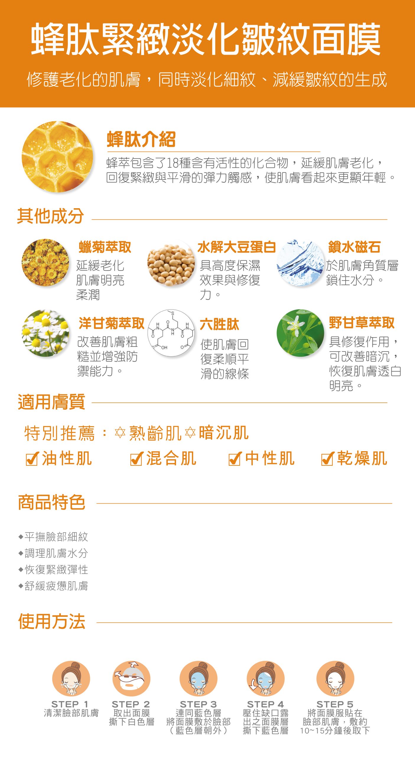 蜂肽緊緻淡化皺紋面膜(一片 30ml)