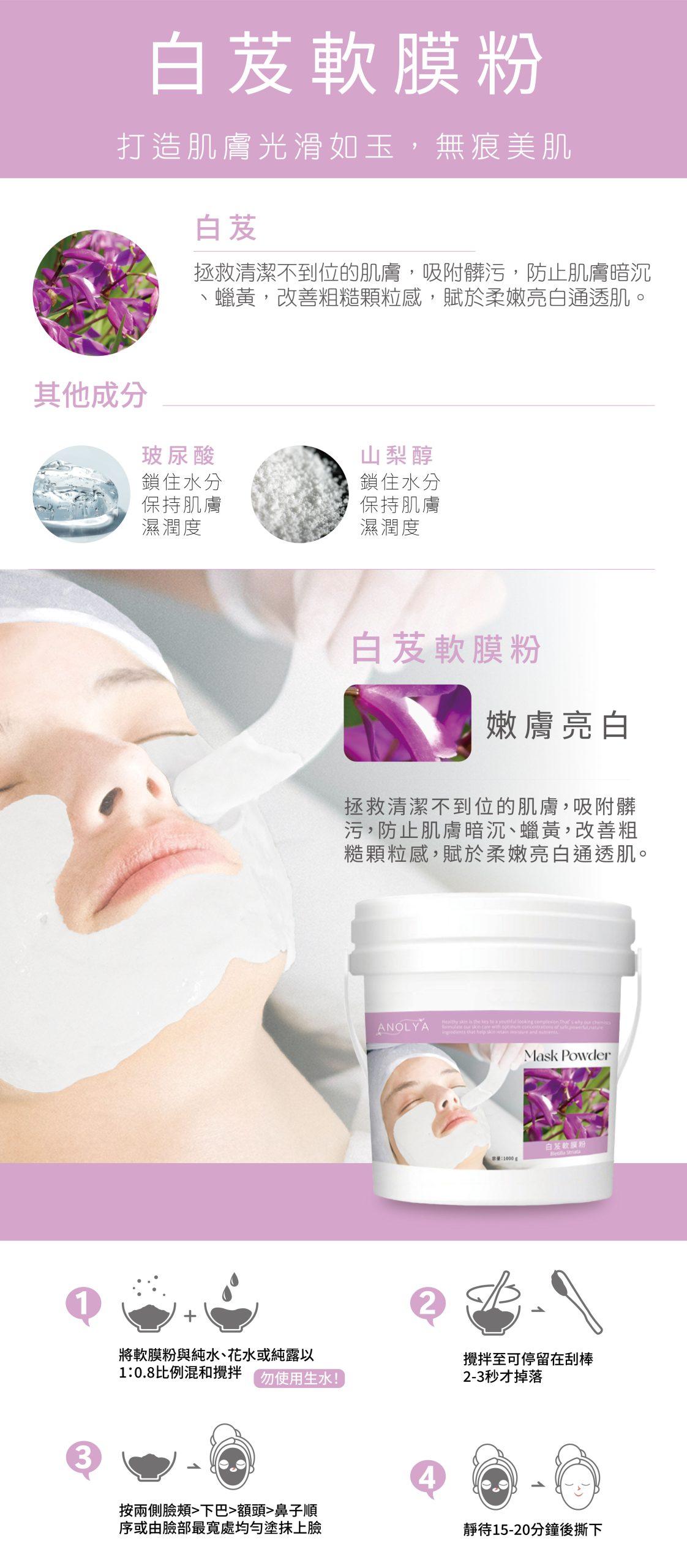1. 將軟膜粉與純水、花水或純露以1:0.8比例混和攪拌