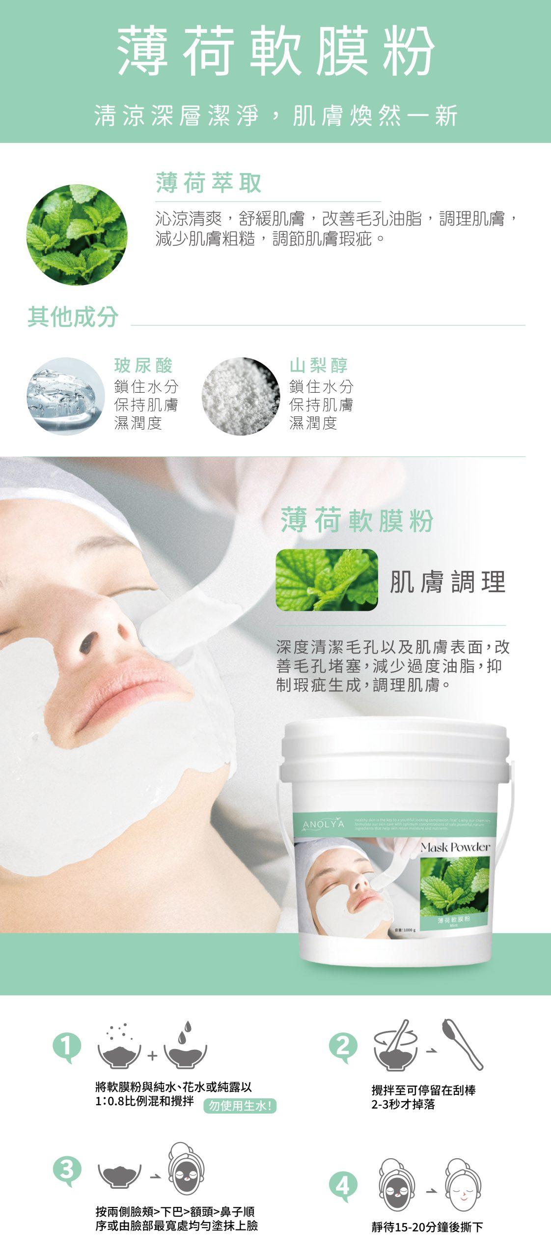 1. 將軟膜粉與純水、花水或純露以1:0.8比例混和攪拌