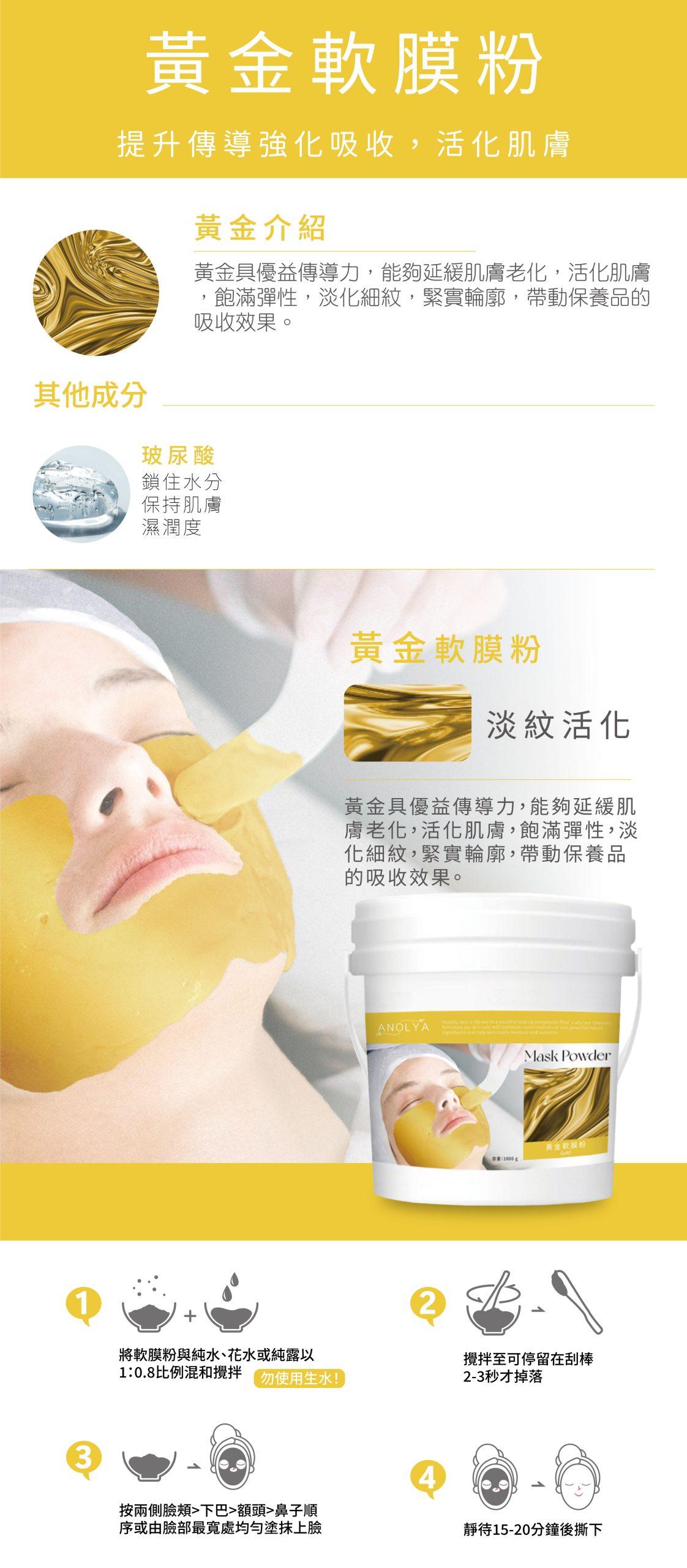 黃金具優益傳導力,能夠延緩肌膚老化, 活化肌膚,飽滿彈性,淡化細紋, 緊實輪廓,帶動保養品的吸收效果。