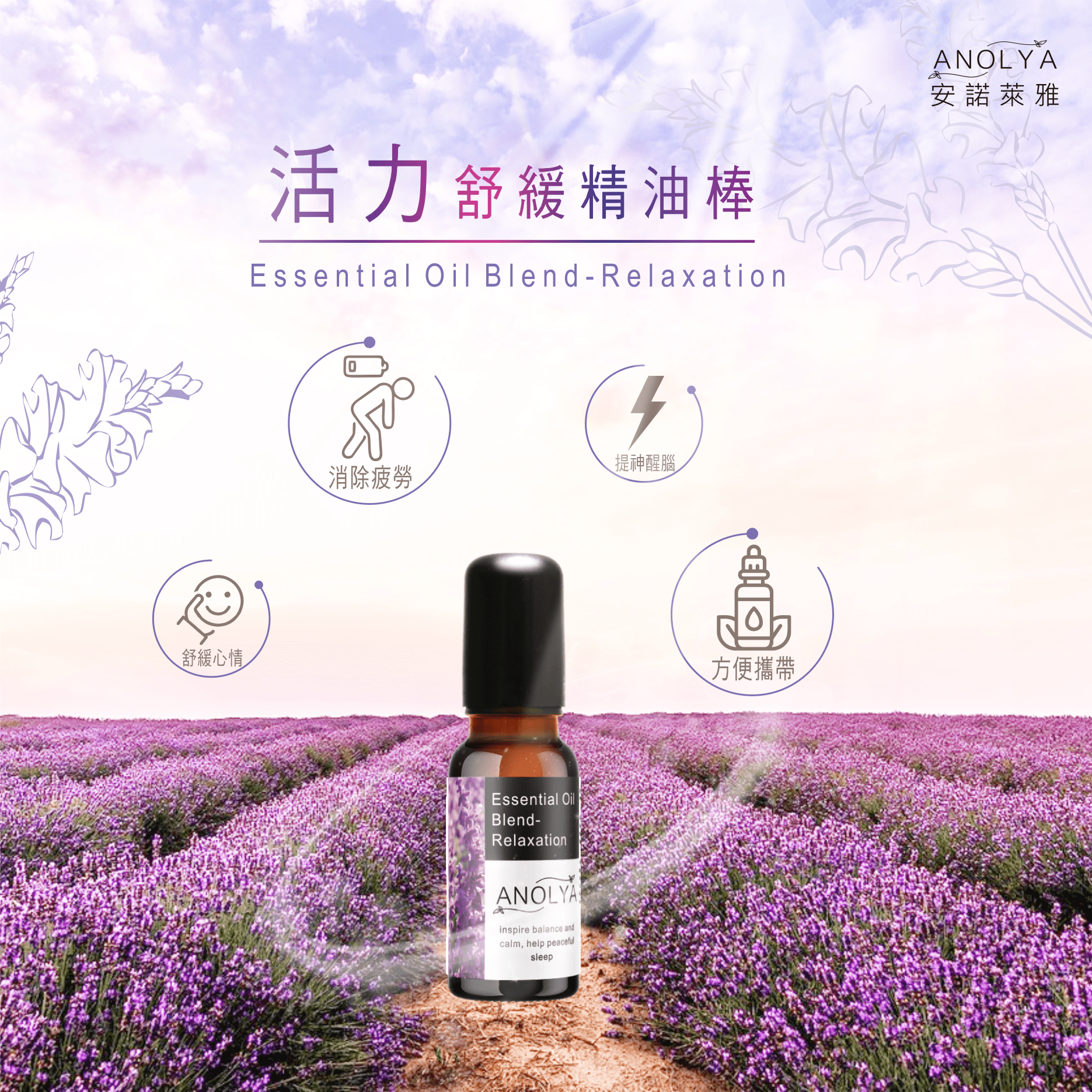 專為身心平衡設計,薰衣草的柔和香氣能安定心神, 帶來深層的放鬆,在忙碌後輕鬆入眠,一覺安穩到天亮。 加入薄荷精油的清涼氣息,注入清新活力, 為早晨或疲憊時刻帶來提振精神的能量。 兼具舒緩與提神功能,讓身心都獲得全方位呵護。 成為隨身的放鬆秘訣,日夜呵護身心, 帶來源源不絕的舒適與能量!